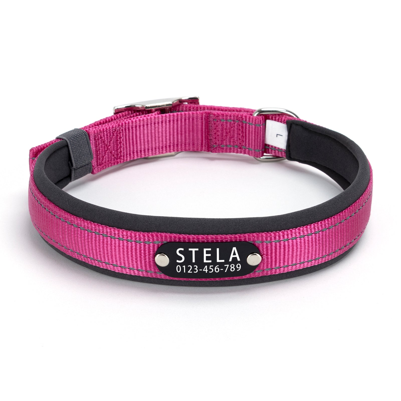 Elevate your pet’s safety and style with these reflective, soft personalized dog collars. Designed for comfort, the lightweight material ensures a gentle fit while enhancing visibility in low-light conditions. Customizable with your pet’s name, these collars combine practicality with elegance, offering both peace of mind during evening walks and a refined look that stands out effortlessly.